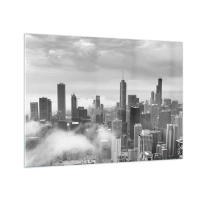 Quadro em vidro - Panorama da cidade com arranha-céus em preto e branco - 70x50cm - Paisagem americana - Decoração de parede moderna para a sala de estar e quarto ARTTOR
