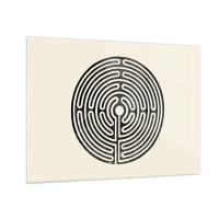 Quadro em vidro - Um labirinto preto e branco em formato circular sobre um fundo claro. - 70x50cm - Ordem misteriosa - Decoração de parede moderna para a sala de estar e quarto ARTTOR