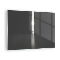 Quadro em vidro - Silhueta de um homem abrindo uma porta para uma luz brilhante - 70x50cm - Um passo para um futuro brilhante - Decoração de parede moderna para a sala de estar e quarto ARTTOR