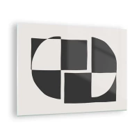 Quadro em vidro - Composição geométrica de formas pretas e brancas - 70x50cm - Antítese – síntese - Decoração de parede moderna para a sala de estar e quarto ARTTOR