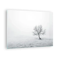 Quadro em vidro - Uma árvore solitária contra a neblina em uma composição monocromática - 70x50cm - Contra o nada - Decoração de parede moderna para a sala de estar e quarto ARTTOR