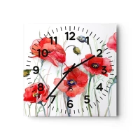 Relógio de parede - Relógio em vidro - Flores polacas - 30x30 cm