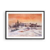 Pôster com moldura preta - Pôr do sol real - 70x50 cm