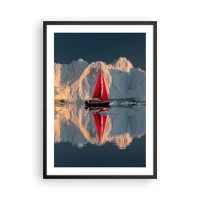 Pôster com moldura preta - A vela vermelha de um barco contra o pano de fundo de geleiras e águas calmas - 50x70cm - No fim do mundo - Decoração de parede moderna para a sala de estar e quarto ARTTOR