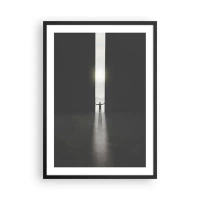 Pôster com moldura preta - Um homem parado na luz de uma fenda em um ambiente escuro - 50x70cm - Um passo para um futuro brilhante - Decoração de parede moderna para a sala de estar e quarto ARTTOR