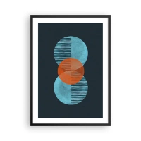 Pôster com moldura preta - Círculos simétricos em tons de azul e laranja com linhas - 50x70cm - Obras de arte simétricas - Decoração de parede moderna para a sala de estar e quarto ARTTOR