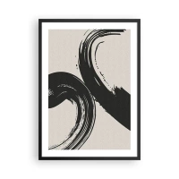 Pôster com moldura preta - Pinceladas dinâmicas em fundo bege - 50x70cm - Varrer e circular - Decoração de parede moderna para a sala de estar e quarto ARTTOR