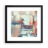 Pôster com moldura preta - Composição vertical em azul e vermelho - 30x30 cm