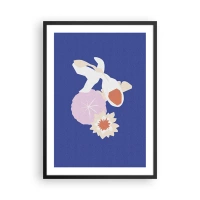 Pôster com moldura preta - Peixes Koi cercados por flores em um fundo intenso - 50x70cm - Composição de flores e botões - Decoração de parede moderna para a sala de estar e quarto ARTTOR