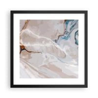Pôster com moldura preta - Meandros azuis sob branco - 40x40 cm