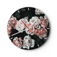 Relógio de parede - Relógio em vidro - Um buquê de rosas cor de rosa em um fundo escuro - 30x30cm - Conjuntos de rosas - Decoração de parede moderna para a sala de estar, cozinha e quarto ARTTOR