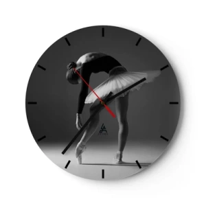 Relógio de parede - Relógio em vidro - Bailarina preta e branca em pose de dança clássica - 30x30cm - Bella balerina - Decoração de parede moderna para a sala de estar, cozinha e quarto ARTTOR