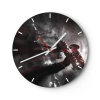 Relógio de parede - Relógio em vidro - Saxofonista na fumaça em estilo preto e branco - 30x30cm - Nos fumos do jazz - Decoração de parede moderna para a sala de estar, cozinha e quarto ARTTOR