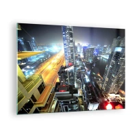 Quadro em vidro - Panorama da cidade noturna com arranha-céus iluminados - 70x50cm - Milagre no deserto - Decoração de parede moderna para a sala de estar e quarto ARTTOR