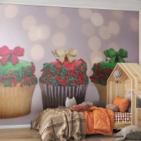 Papel de Parede Standard Eco - Cupcakes de Natal com decorações - 100x70cm - Doces sob o laço - Decoração de parede moderna para a sala de estar e quarto ARTTOR