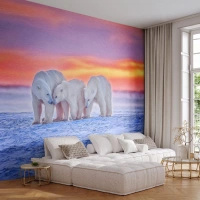 Papel de Parede Standard Eco - Uma família de ursos polares tendo como pano de fundo o oeste ártico. - 100x70cm - Tudo o que precisa é de aconchego familiar - Decoração de parede moderna para a sala de estar e quarto ARTTOR