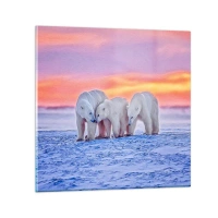 Relógio de parede - Relógio em vidro - Três ursos polares na neve ao pôr do sol - 30x30cm - Tudo o que precisa é de aconchego familiar - Decoração de parede moderna para a sala de estar, cozinha e quarto ARTTOR