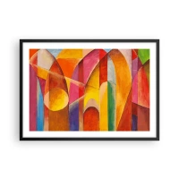 Quadro em vidro - Abstração colorida com formas geométricas - 70x50cm - Catedral do Sol - Decoração de parede moderna para a sala de estar e quarto ARTTOR