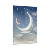 Papel de Parede Premium Canvas - O encanto azul - Abstração, Para crianças, Lua - 100x70 cm