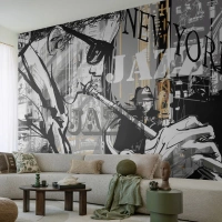 Papel de Parede Autocolante Deluxe Sticker - Ao ritmo de Nova Iorque - Nova Iorque, Música, Jazz - 300x210 cm