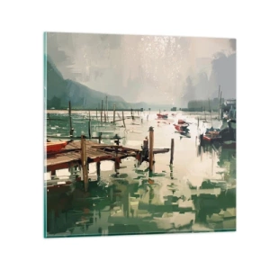 Relógio de parede - Relógio em vidro - Um píer atmosférico com barcos em águas calmas - 30x30cm - Mergulhado na lua derretida - Decoração de parede moderna para a sala de estar, cozinha e quarto ARTTOR