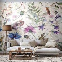 Papel de Parede Autocolante Deluxe Sticker - Herbário polaco - Flores do campo, Jardim, Natureza - 200x140 cm