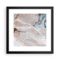 Pôster com moldura preta - Meandros azuis sob branco - 30x30 cm