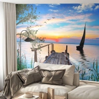 Papel de Parede Premium Sand - Boa noite - Paisagem, Lago, Ponte de madeira - 400x280 cm