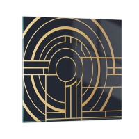 Relógio de parede - Relógio em vidro - Composição geométrica dourada e preta com padrão concêntrico - 30x30cm - Rotação das coisas - Decoração de parede moderna para a sala de estar, cozinha e quarto ARTTOR
