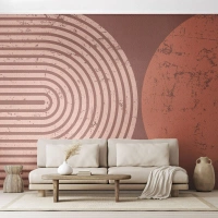 Papel de Parede Standard Eco - Padrão abstrato em tons de terracota com linhas e círculos - 100x70cm - Relacionamento próximo - Decoração de parede moderna para a sala de estar e quarto ARTTOR