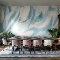 Papel de Parede Standard Eco - Pinceladas abstratas em azul claro e creme - 100x70cm - Brisas de primavera - Decoração de parede moderna para a sala de estar e quarto ARTTOR
