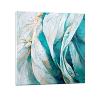 Quadro em vidro - Abstração azul com lema dourado - 30x30 cm