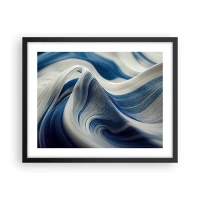Pôster com moldura preta - A fluidez do azul e do branco - 50x40 cm