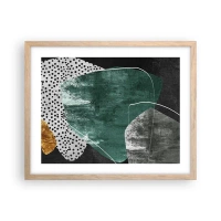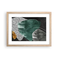 Pôster com moldura de carvalho claro - Abstração colorida com folha de ouro - 50x40 cm