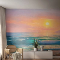 Papel de Parede Standard Eco - Um pôr do sol pitoresco sobre o mar com ondas - 100x70cm - O canto turquesa das ondas - Decoração de parede moderna para a sala de estar e quarto ARTTOR