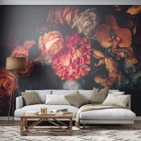 Papel de Parede Standard Eco - Buquê de flores escuras com rosas e orquídeas em estilo vintage - 100x70cm - Como nos mestres holandeses - Decoração de parede moderna para a sala de estar e quarto ARTTOR