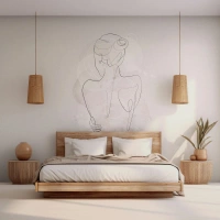 Papel de Parede Standard Eco - Um esboço delicado de uma silhueta feminina em um fundo claro - 100x70cm - Como um instrumento sensível - Decoração de parede moderna para a sala de estar e quarto ARTTOR