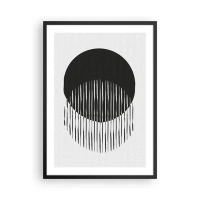 Pôster com moldura preta - Composição abstrata de um círculo preto e linhas verticais - 50x70cm - Seu alter ego - Decoração de parede moderna para a sala de estar e quarto ARTTOR