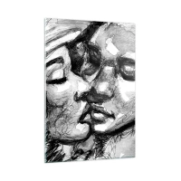 Pôster com moldura preta - Retrato abstrato em preto e branco de um beijo - 50x70cm - Um momento de ternura - Decoração de parede moderna para a sala de estar e quarto ARTTOR