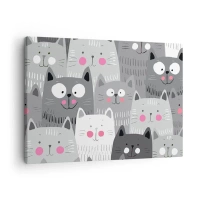 Quadro em tela - Um padrão divertido com gatos em tons de cinza - 70x50cm - O mundo dos gatos - Decoração de parede moderna para a sala de estar e quarto ARTTOR