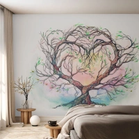 Papel de Parede Standard Eco - Árvore em forma de coração em aquarela - 100x70cm - Juntos contra os vendavais - Decoração de parede moderna para a sala de estar e quarto ARTTOR