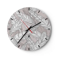 Relógio de parede - Relógio em vidro - Folhas de bananeira pretas e brancas sobre fundo claro - 30x30cm - Turbilhão de penas - Decoração de parede moderna para a sala de estar, cozinha e quarto ARTTOR