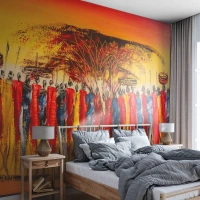 Papel de Parede Standard Eco - Lá, lá, lá vão eles - Pedaço, Pessoas, África - 500x350 cm