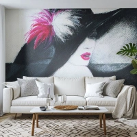 Papel de Parede Autocolante Deluxe Sticker - Sempre misteriosa - Mulher de chapéu, Rosto de mulher, lábios vermelhos - 250x175 cm