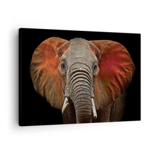 Quadro em tela - Retrato de um elefante em um fundo preto - 70x50cm - Eu sou selvagem, e você? - Decoração de parede moderna para a sala de estar e quarto ARTTOR