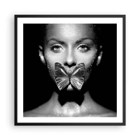 Pôster com moldura preta - O beijo da borboleta - 60x60 cm