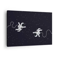 Quadro em tela - Astronautas flutuando no espaço com um cenário de estrelas - 70x50cm - Emaranhado Cósmico - Decoração de parede moderna para a sala de estar e quarto ARTTOR