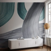 Papel de parede personalizado Premium Sand - Trilhas esmeralda e preta - Pintar, Escovar, Minimalismo