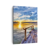 Pôster com moldura preta - Cais de madeira sobre o lago ao pôr do sol - 50x70cm - O vento descansa - Decoração de parede moderna para a sala de estar e quarto ARTTOR