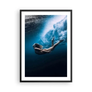 Pôster com moldura preta - Uma mulher nadando debaixo d'água cercada por bolhas e ondas. - 50x70cm - Sereia moderna - Decoração de parede moderna para a sala de estar e quarto ARTTOR